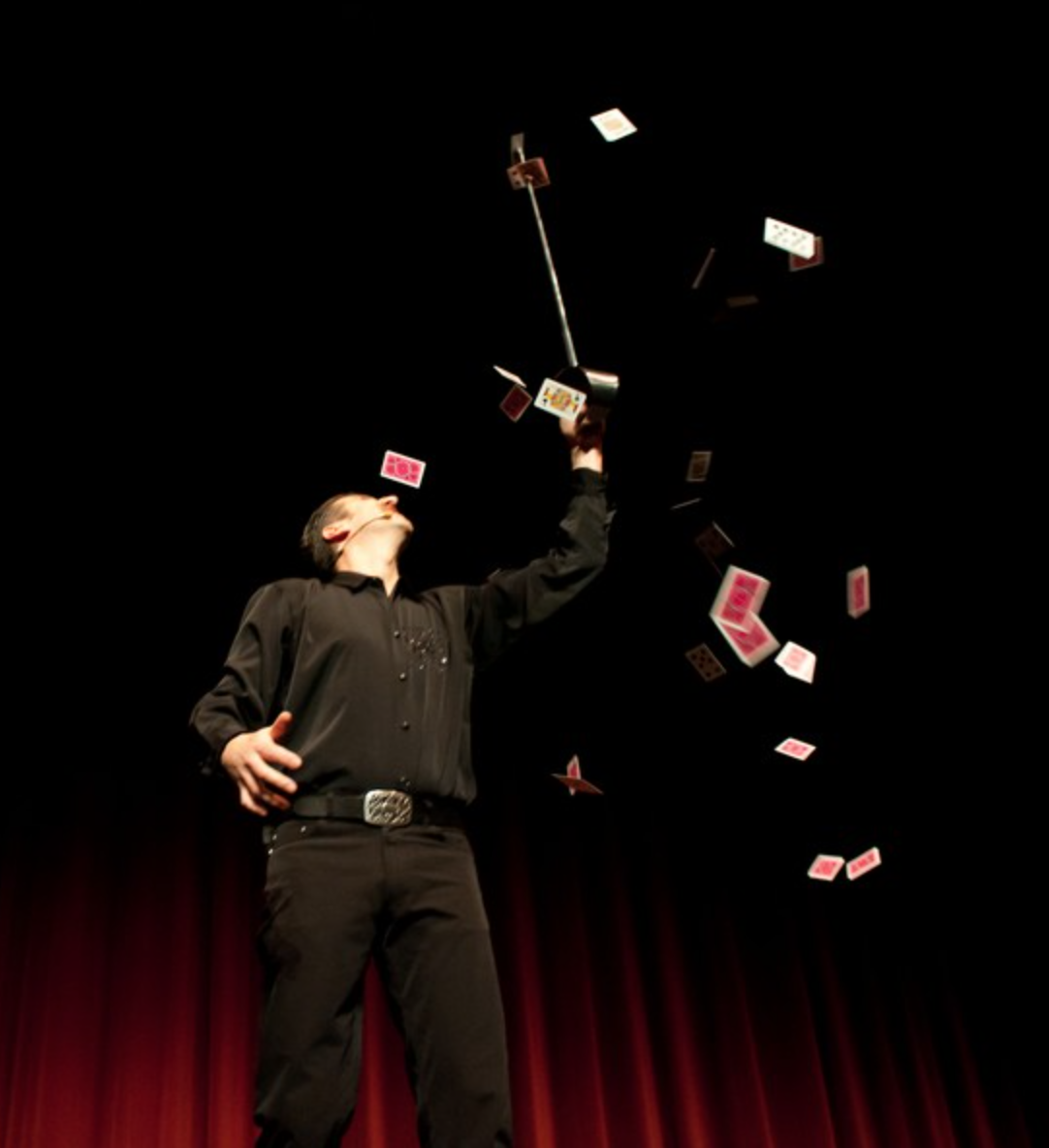 Like all magicians, he began by learning the basics of handling cards, coins and balls.